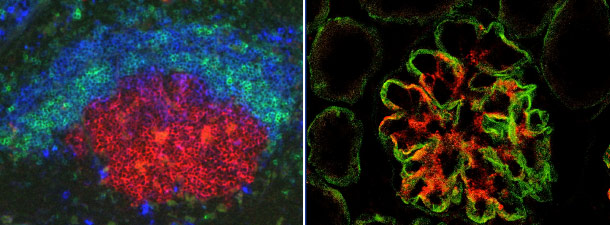 A second scientific topic of this Transregional CRC is to examine and understand dysregulated functions of B cells that can lead to attacks of antibodies on the own body. Dysregulated anti-self reactive antibodies or autoantibodies can be the involved in the pathogenesis of autoimmune diseases such as rheumatoid arthritis, systemic lupus erythematosus, or multiple sclerosis. There is also evidence that it is not only the autoantibodies, but also other antibody-independent B cell functions that contribute to these autoimmune diseases. The scientists of this consortium aim to broaden the general knowledge of autoimmune diseases with B cell involvement and to develop new therapeutic strategies against these diseases.
